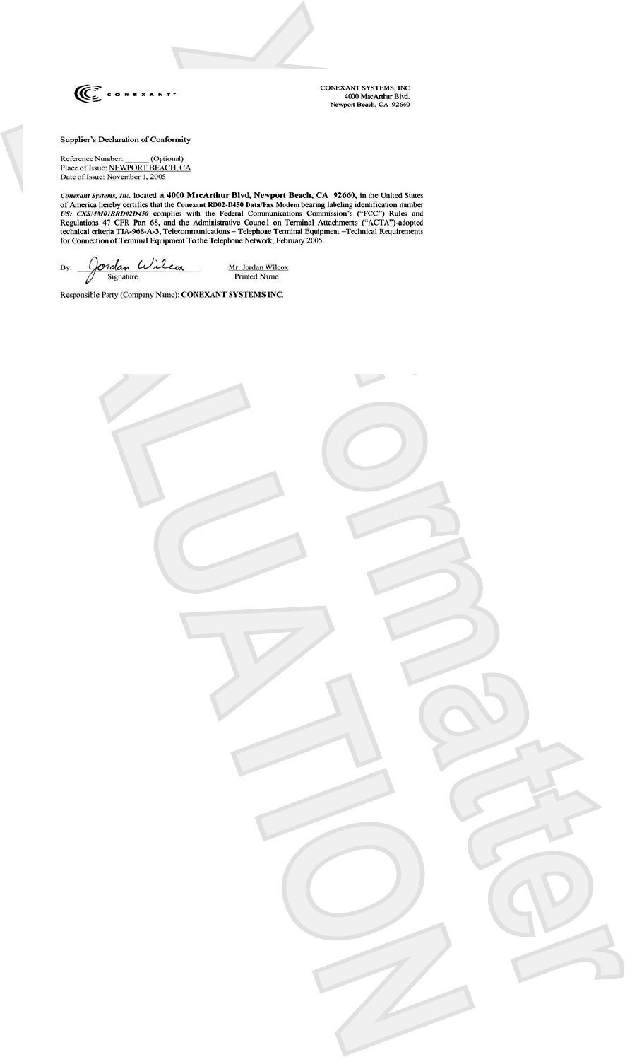 Broadcom BRCM1030 802.11g WLAN PCI-E Mini Card User Manual legal part