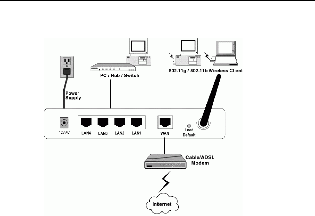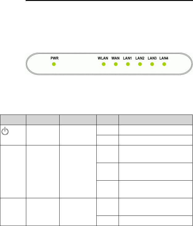 • Front Panel: 7 LEDs ( Power x 1, LAN x 4, WAN x 1,