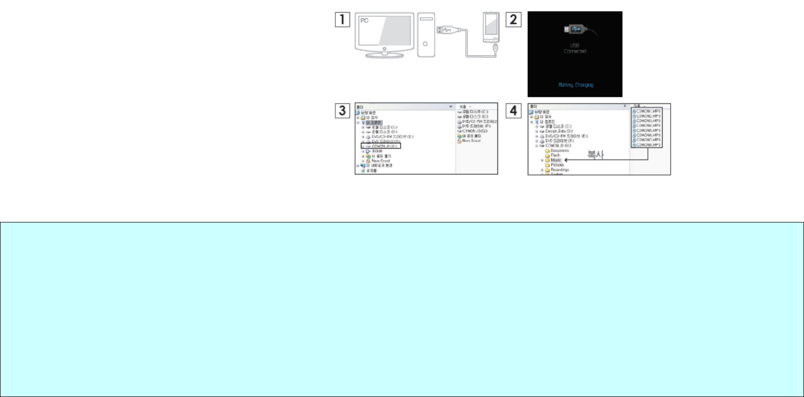 + Do not mix directions when connecting USB cables or AC adapters to your player or PC. Connecting USB cables incorrectly