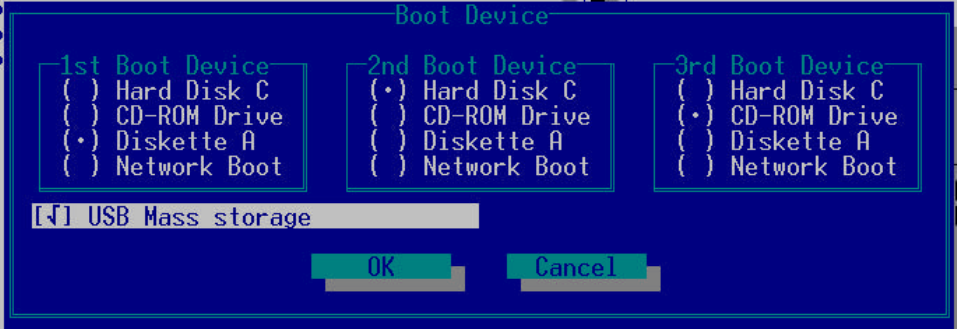 Use the [SPACE] bar to select the Legacy USB option or not.