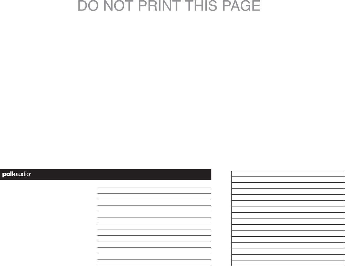 veuillez enregistrer votre nouveau produit en ligne à l’adresse web: www.polkaudio.com/registration
