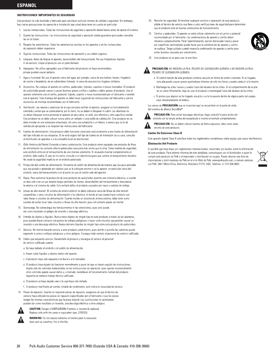 ou contactez le Service à la Clientèle de Polk au 800-377-7655 aux États-Unis et au Canada