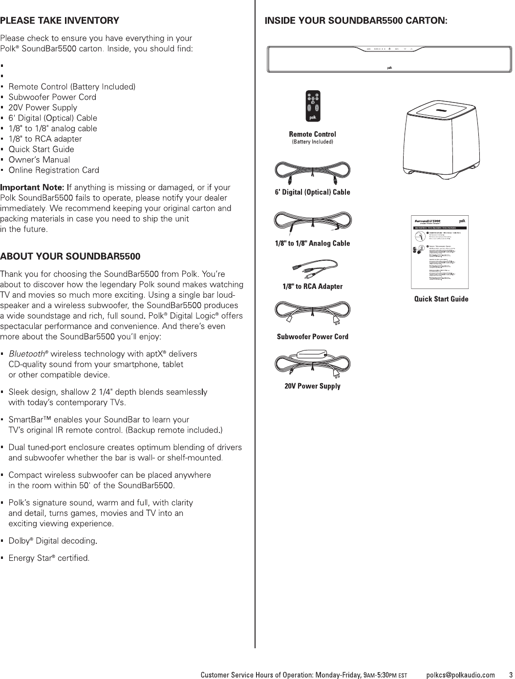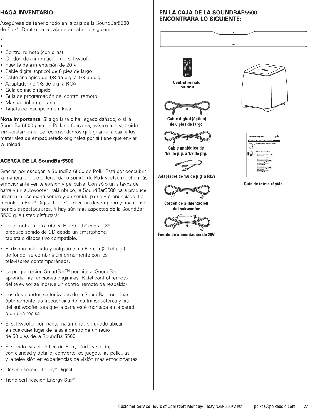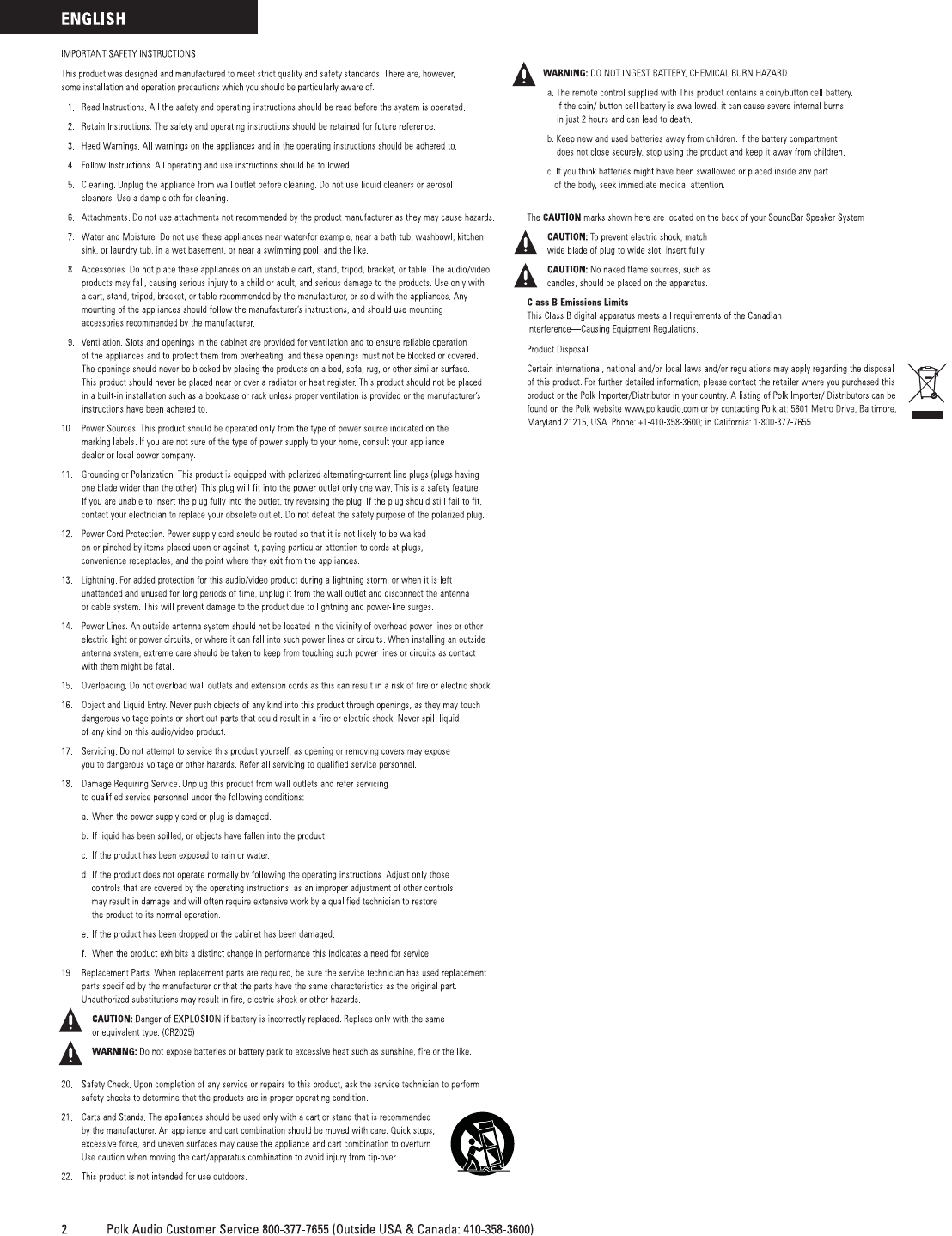 to call us or email us. In North America and Canada, call Polk Audio Customer Service 800-377-7655