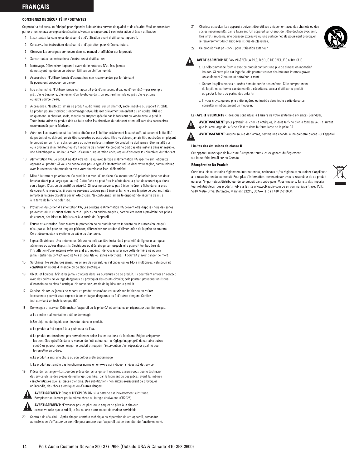 pas à communiquer avec nous par courriel à l’adresse polkcs@polkaudio.com—ou par téléphone