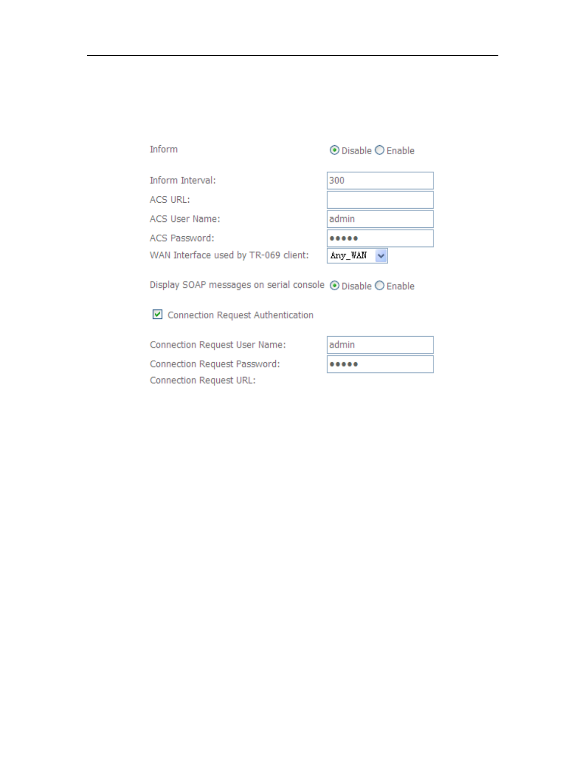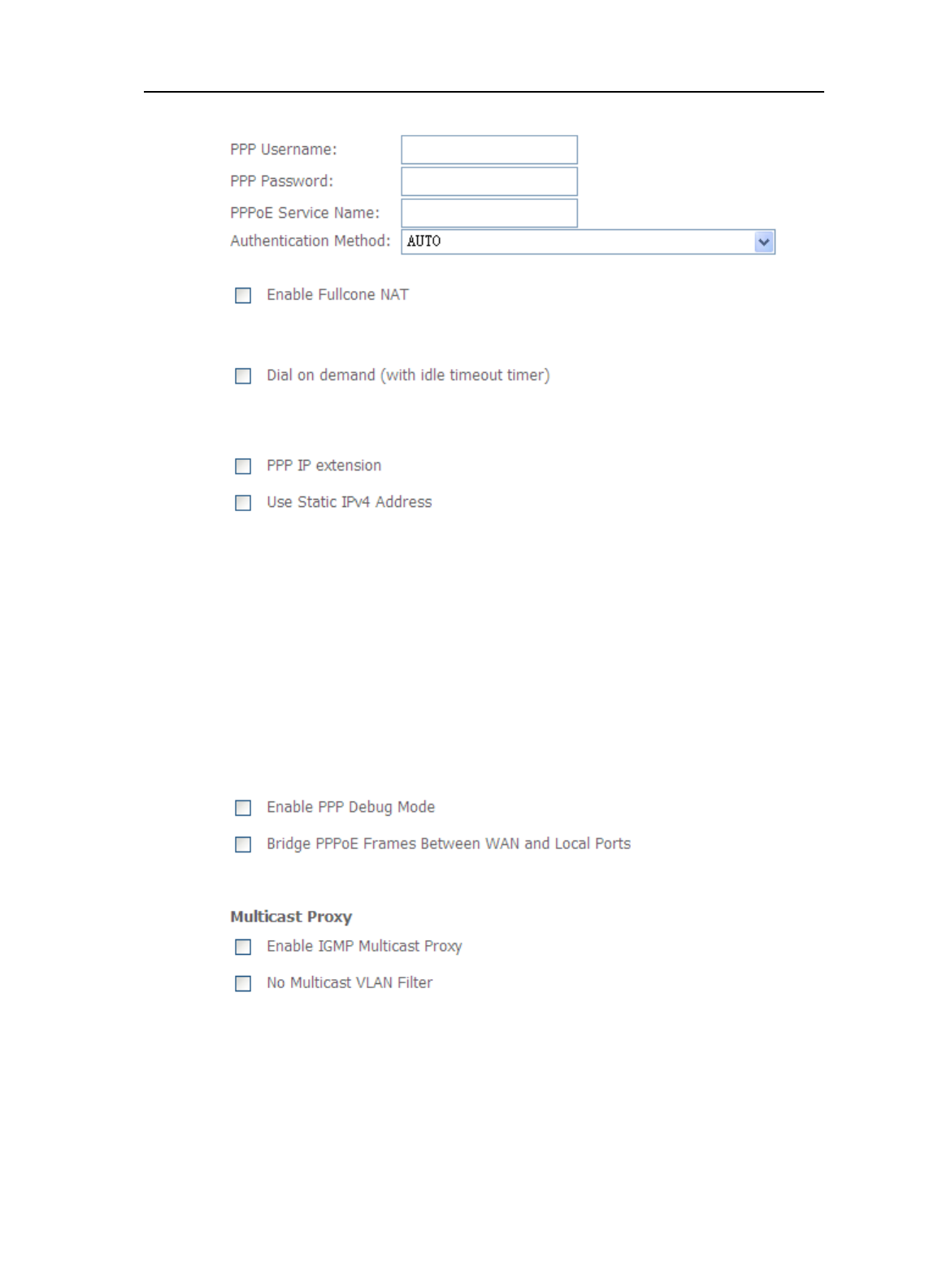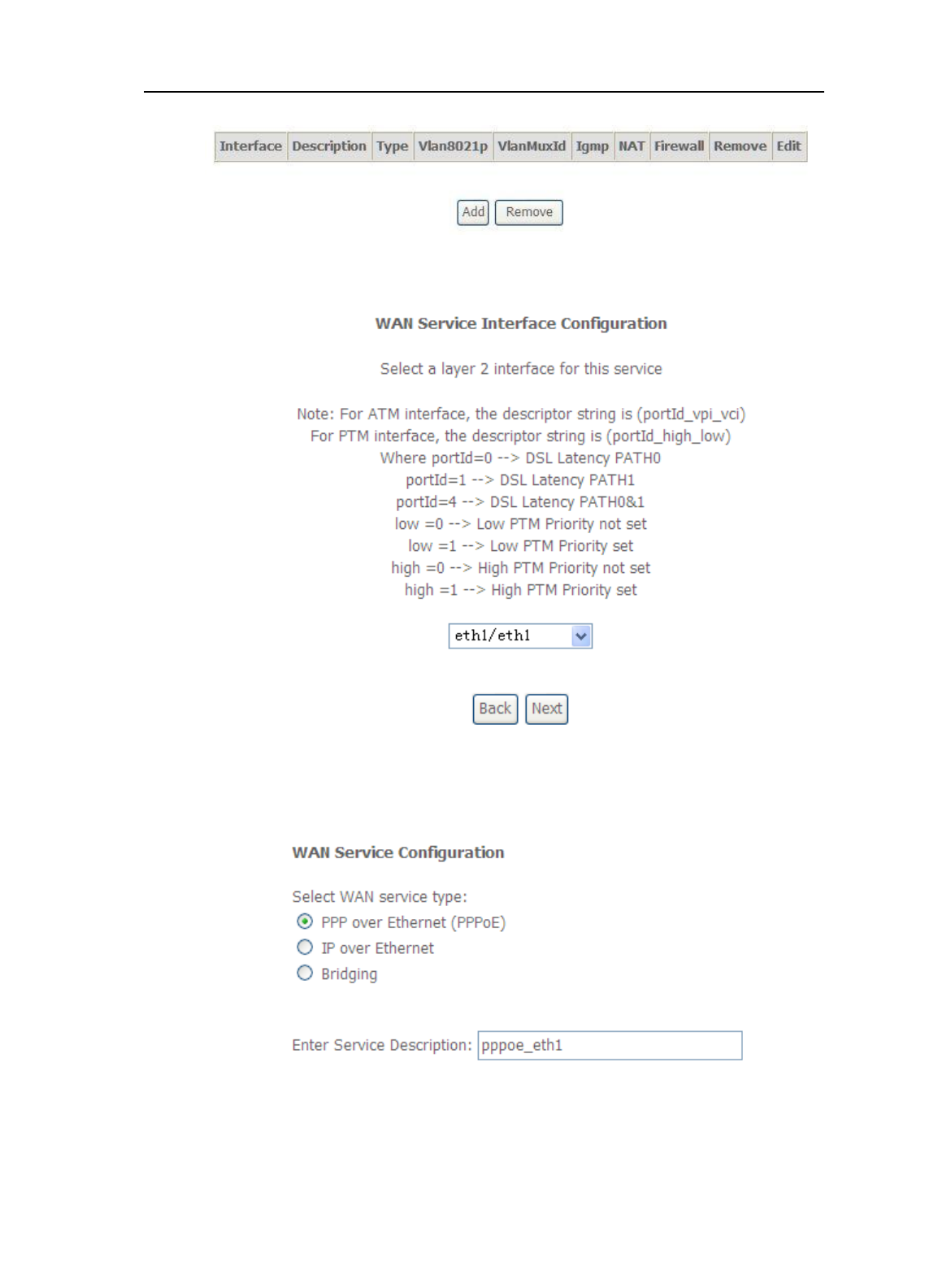 VPI, VCI, type of encapsulation and type of multiplexing setting are the same as