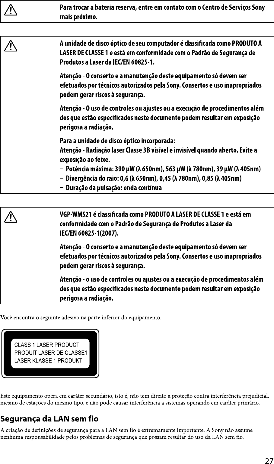 Refer to the supplied safety information manual.•