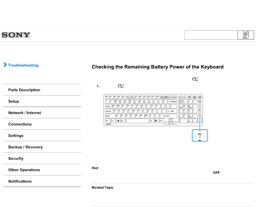 Checking the Remaining Battery Power of the Keyboard