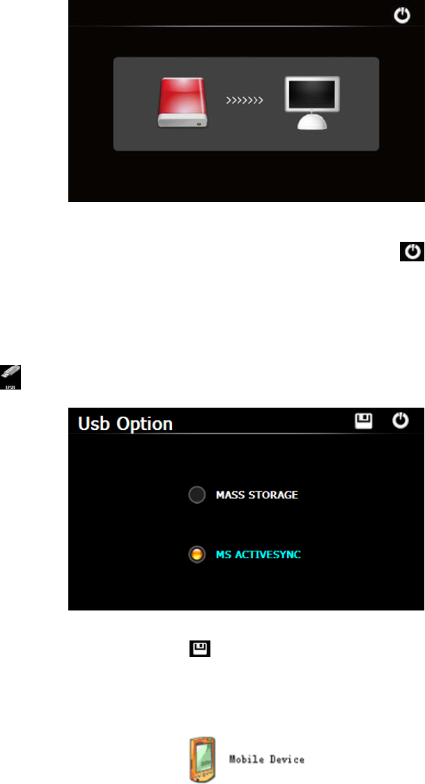 To disconnect the navigator from PC and enter charging mode, you may tap .