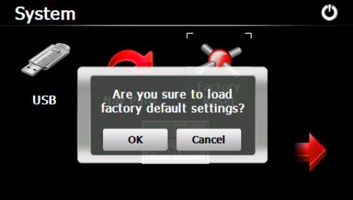Tap in the setting interface to restore the factory setting. The following dialog will be