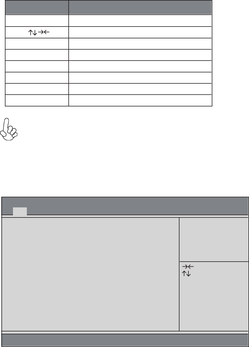 The BIOS navigation keys are listed below: