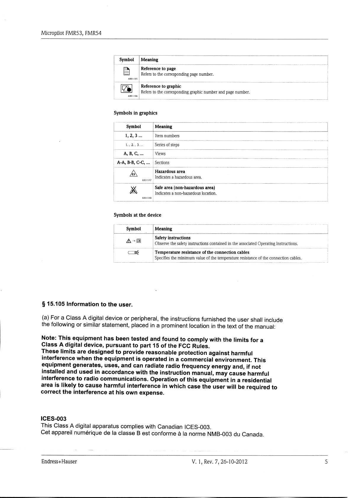 2 V. 1, Rev. 7, 26-10-2012 Endress+Hauser