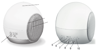 you can choose between the radio and various sounds. You can also control all device functions from your