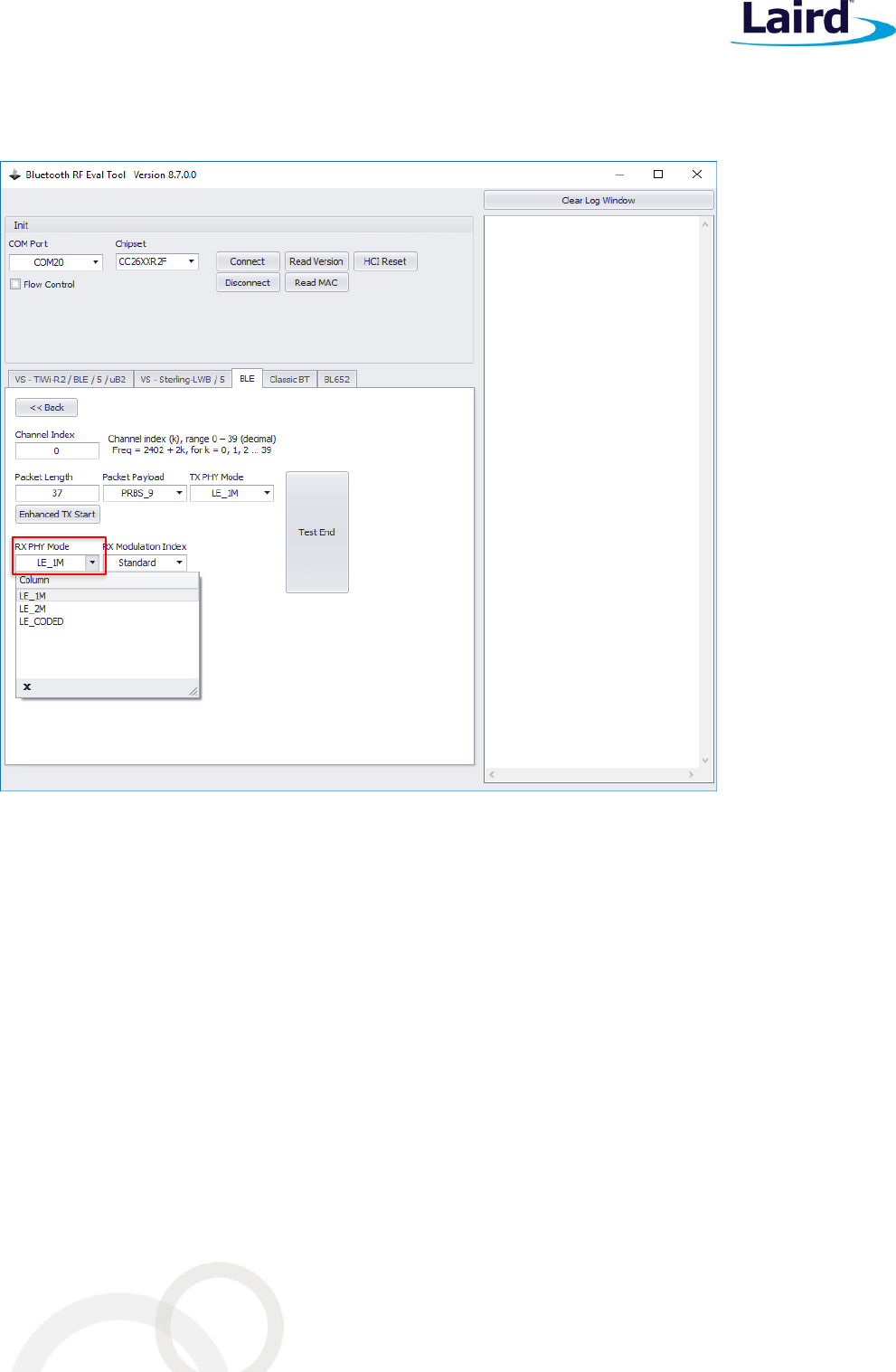 ▪ Select the necessary data rate options based on what BLE version is being tested for Receive testing.