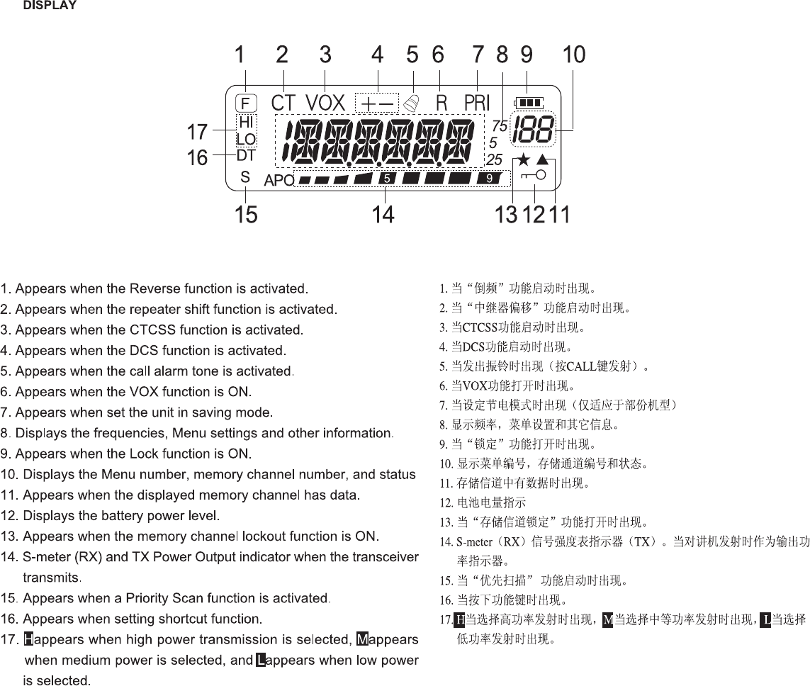 RF CAUTION! NEVER hold the transceiver so that the antenna is very close to, or