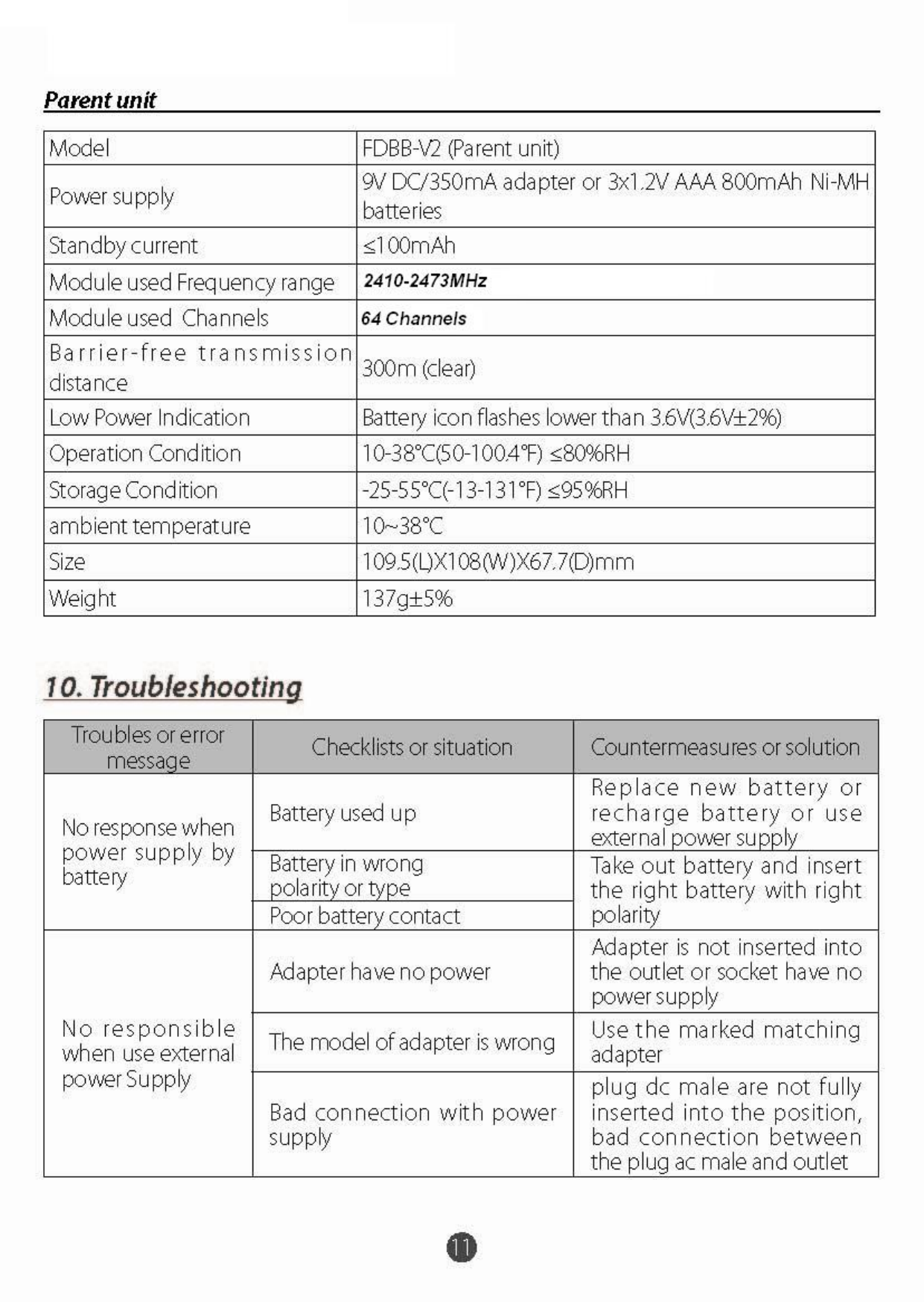 Famidoc Technology FDBB-V2M Baby Monitor, Parent Unit User Manual
