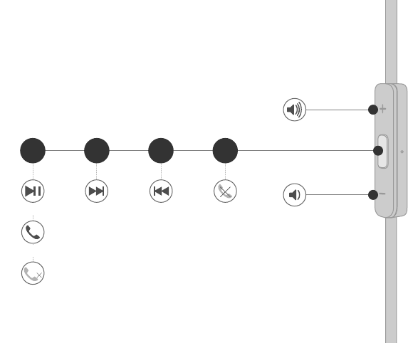 NFC辅助连接:确认耳机开机,打开手机或其它音源的NFC,用其NFC模块轻触左耳