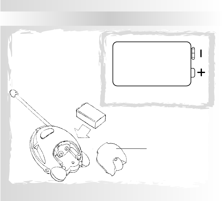 • Snap terminals of a fresh, 9V alkaline battery into receiver connectors.