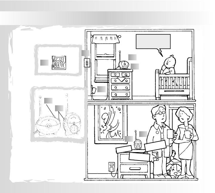 - Never place transmitter in a crib or playpen. Keep transmitter and receiver