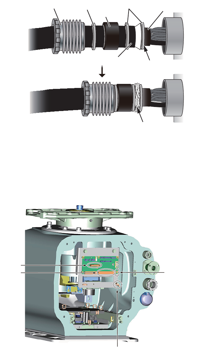 shields to the locations shown below. Bind all cables with a cable tie (local supply).