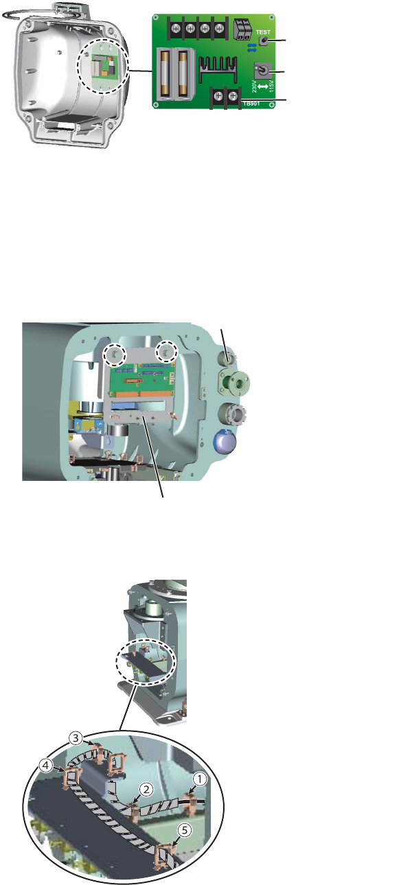 2. Unfasten the bolts from the cable clamp. Lay the cables in their cable slots so their