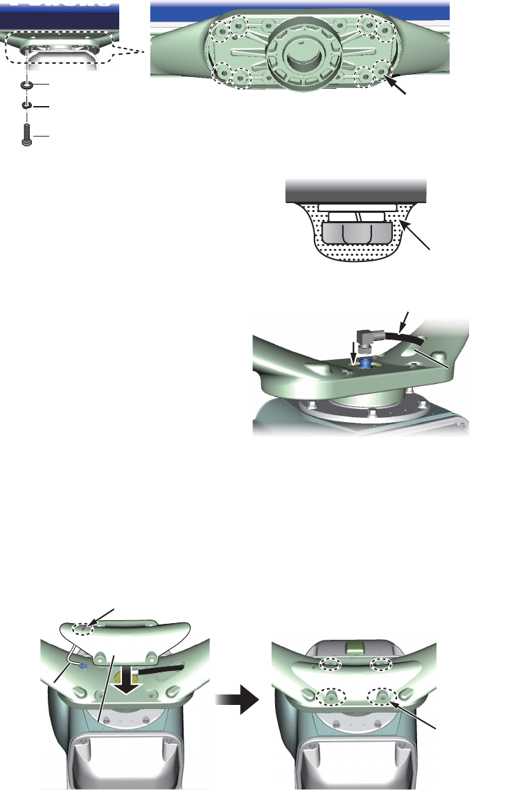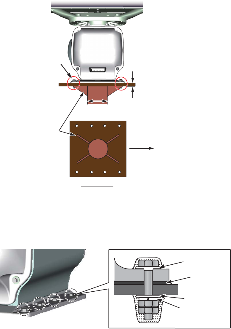 with two M5 screws (supplied) coated with marine sealant supplied. Fasten