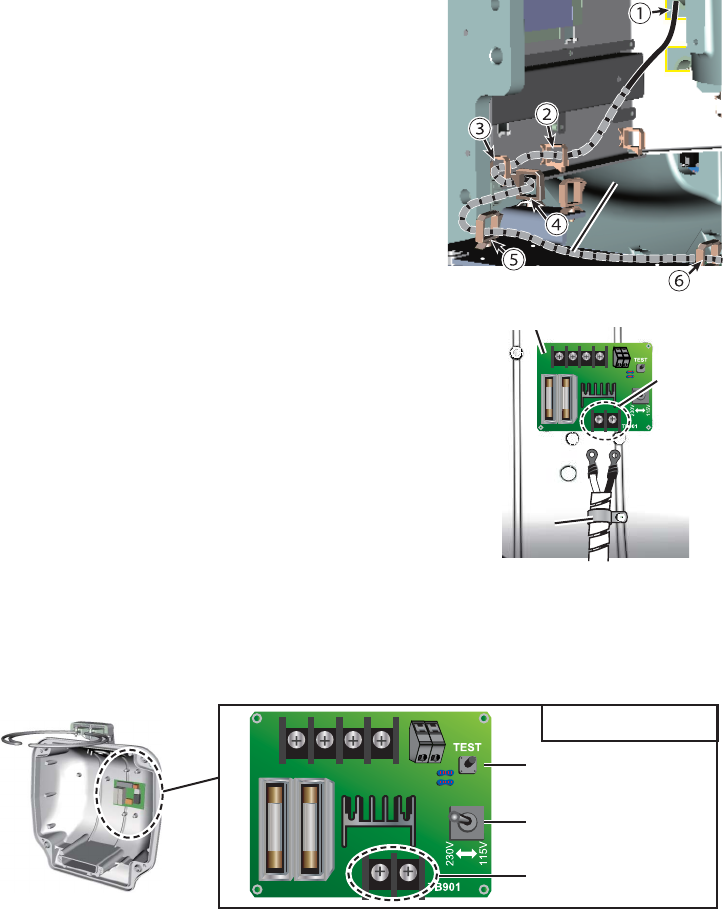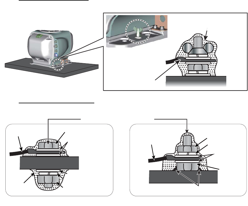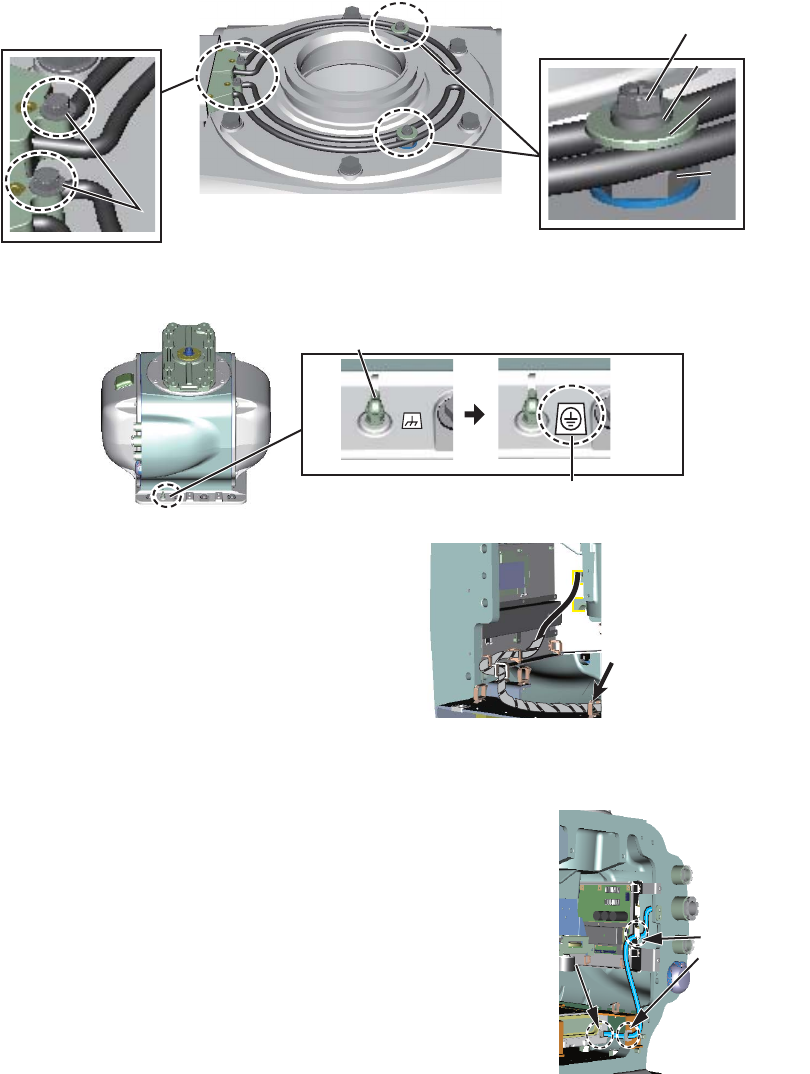 9) Attach the supplied earth label over the earth label attached near the ground-