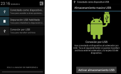 on, you see the icon in the status bar on the top of the screen when it connected to a PC by a