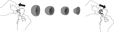 O headset é fornecido com quatro tamanhos de gel de ouvido: