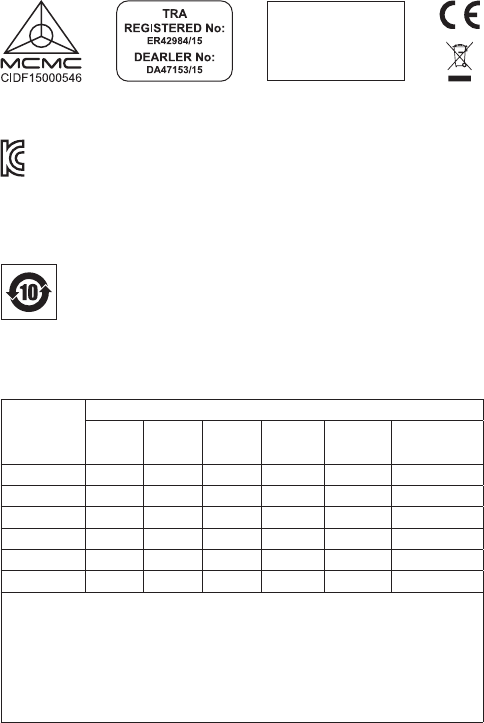 注: 含有有害物质的部件由于全球技术发展水平限制而无法实现有害物质的