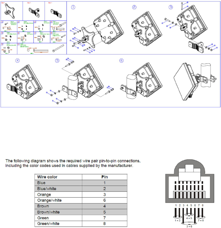 5. Assemble an RJ-45 connector with a protective cover on the PoE end of the POE-ODU cable. Refer to the pin