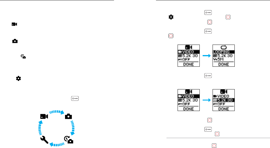 1. Press the Mode button [ ] repeatedly until you get to Settings