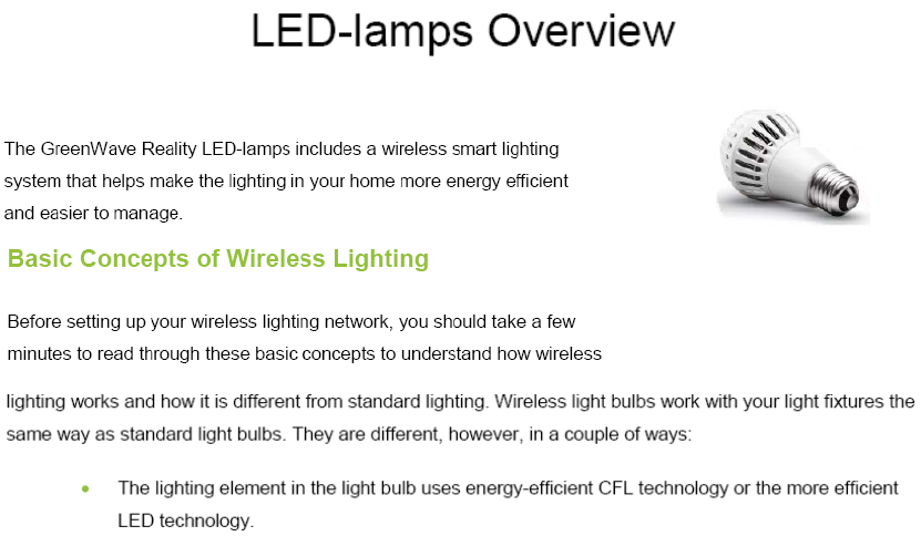 Greenwave Reality d b a Greenwave Systems GLA19147IAJNW Self-Ballasted LED-lamps User Manual en lighting user guide remote draft 2012 03 28