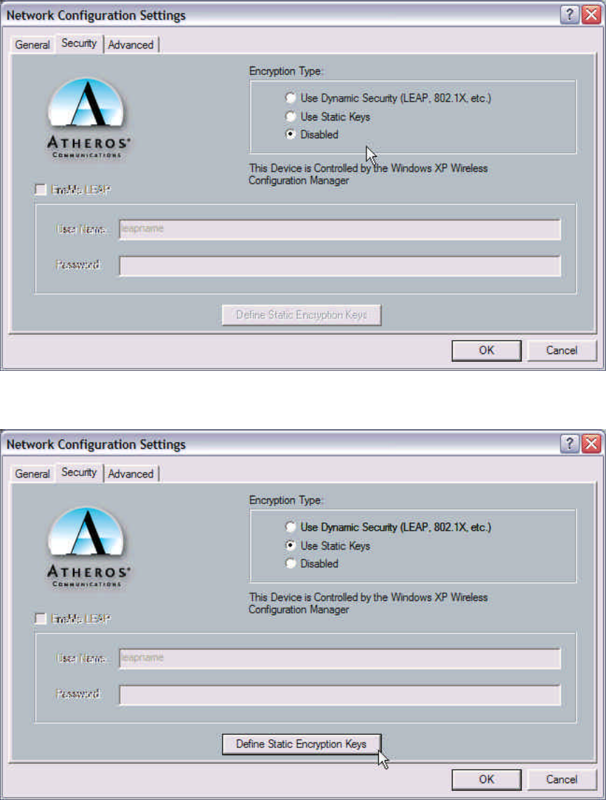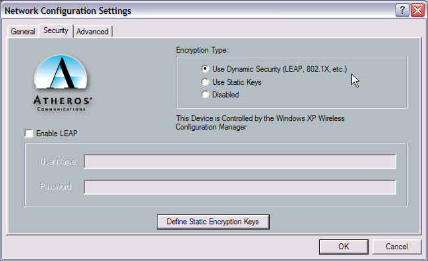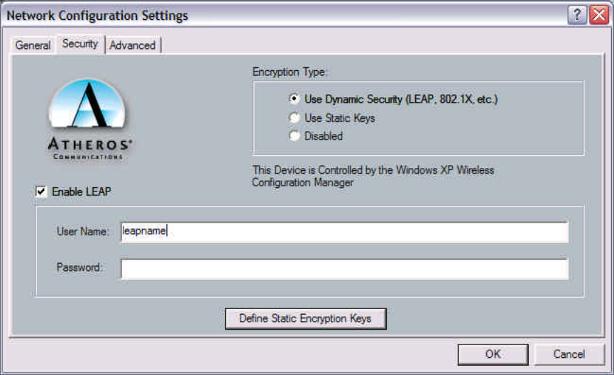 • Wired Equivalent Privacy (WEP) encryption, LEAP, TKIP, AES-CCM support