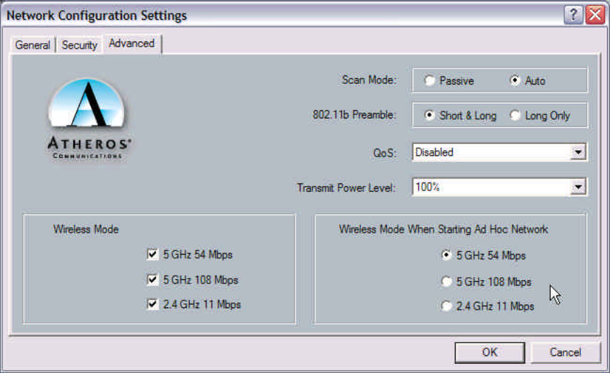 Wireless Mode When Starting Ad Hoc Network: Sets maximum transmit rate of the 802.11a/b