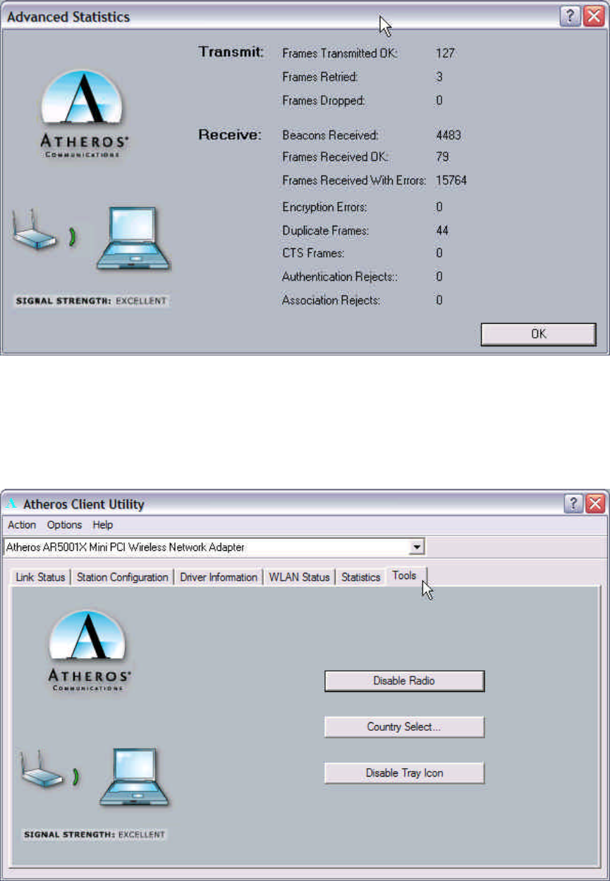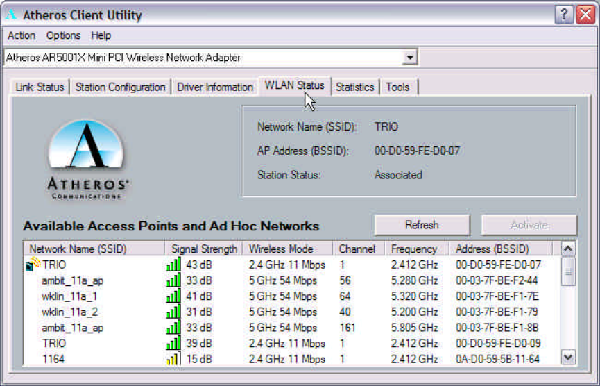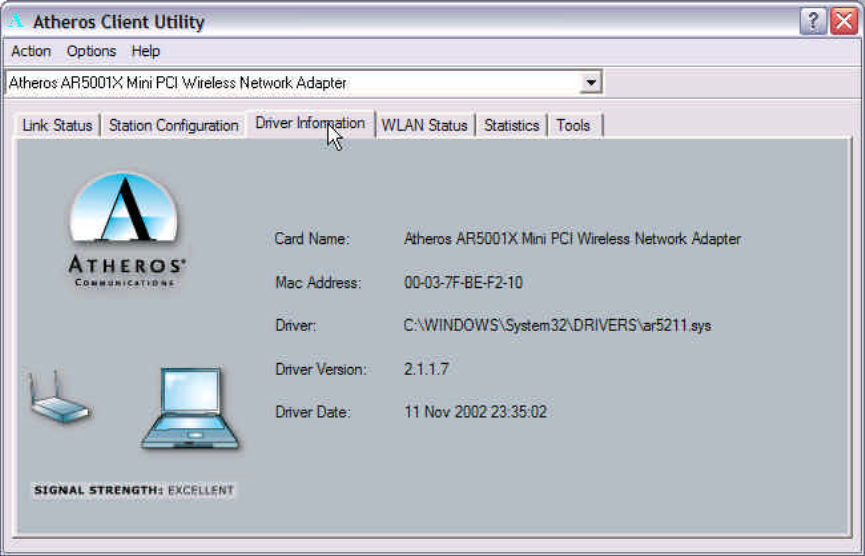 Displays the name of this 802.11a/b WLAN Mini PCI card.
