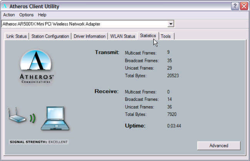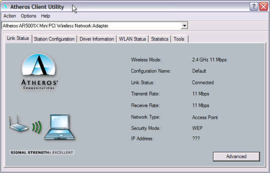 Wireless Mode: Sets maximum transmit rate of the 802.11a/b WLAN Mini PCI card will force the