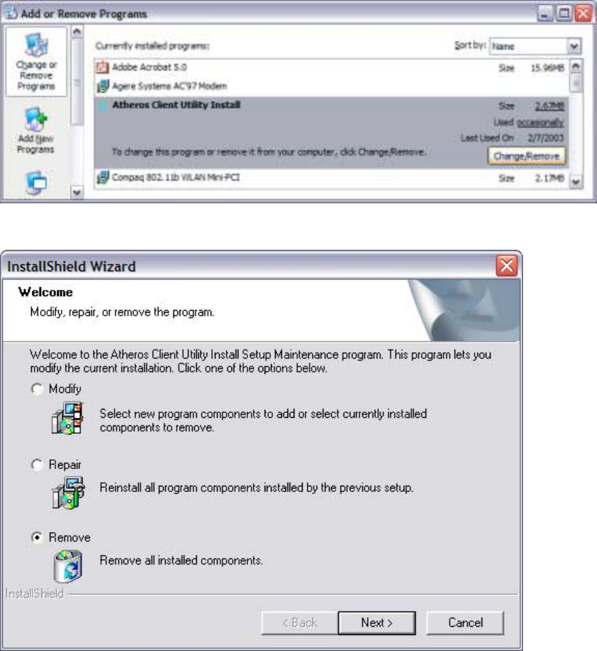 Appendix A - Atheros Client Utility Uninstall Process.....................................................25