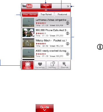 YouTube™ lets you browse, search, and watch video clips from the YouTube