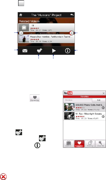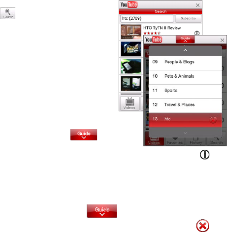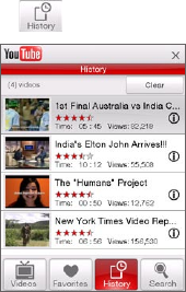 In the Videos, Favorites, or History screen, tap a video to launch the YouTube