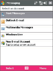 1. Tap Start > Messaging then select an e-mail account.