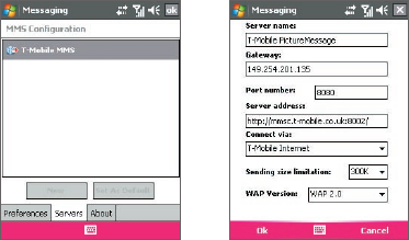 Connection Select the T-Mobile service or data connection