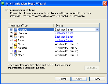 Windows Mobile, ActiveSync, Excel, Internet Explorer, MSN, Outlook,