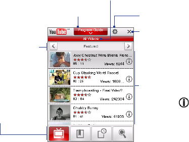 YouTube™ lets you browse, search, and watch video clips from the YouTube server.