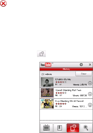 On the Videos, Bookmarks, or History screen, tap a video to launch the YouTube