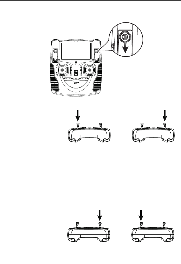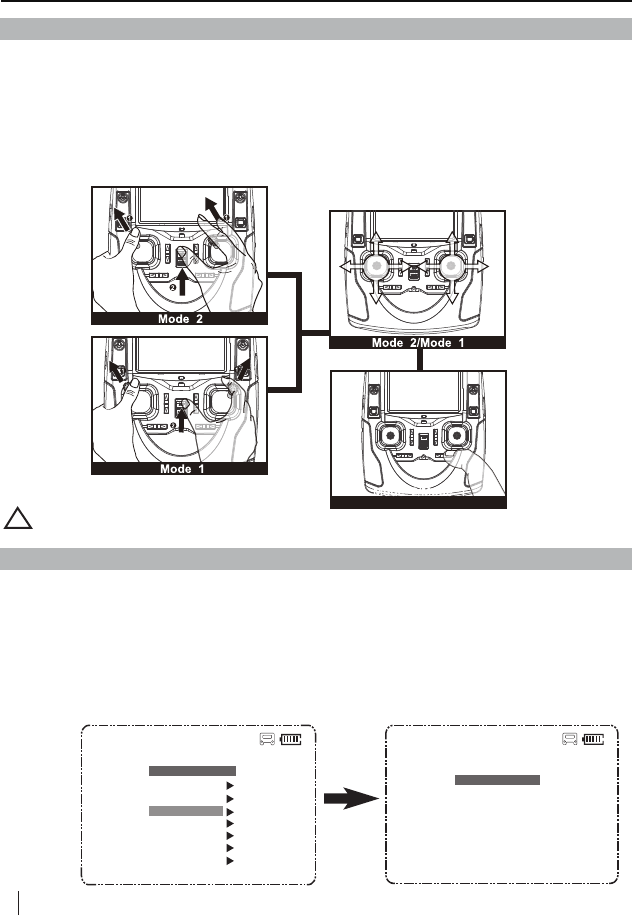 Pull the throttle stick to the lowest position and press the Elevator stick for 1.5 seconds to