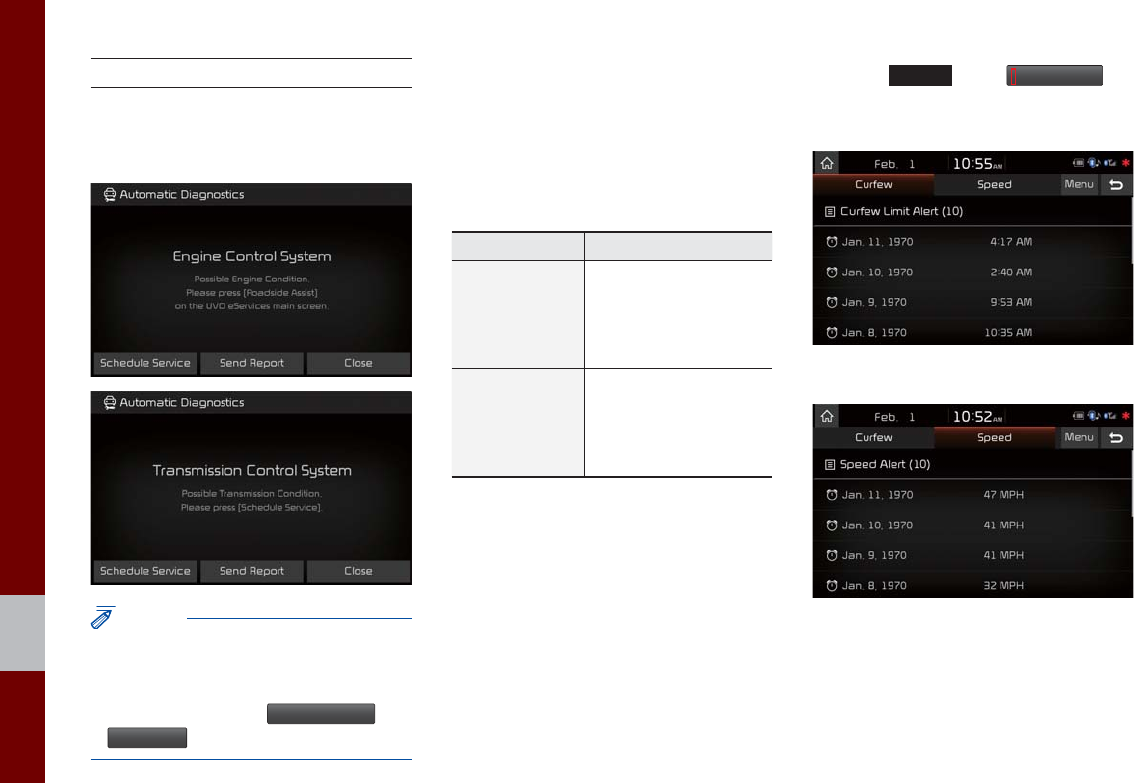 Diagnostics Informs you if diagnostic issues are found in your vehicle