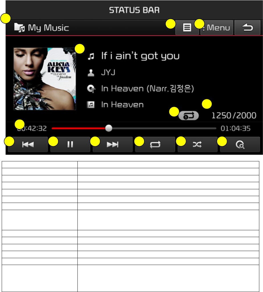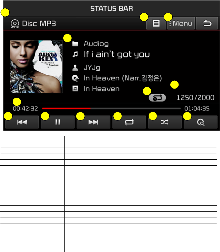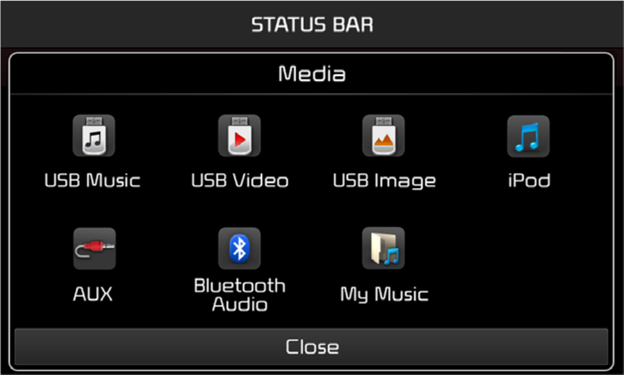 2. Bluetooth Audio connection status: If Bluetooth Audio is connected, the icon is
