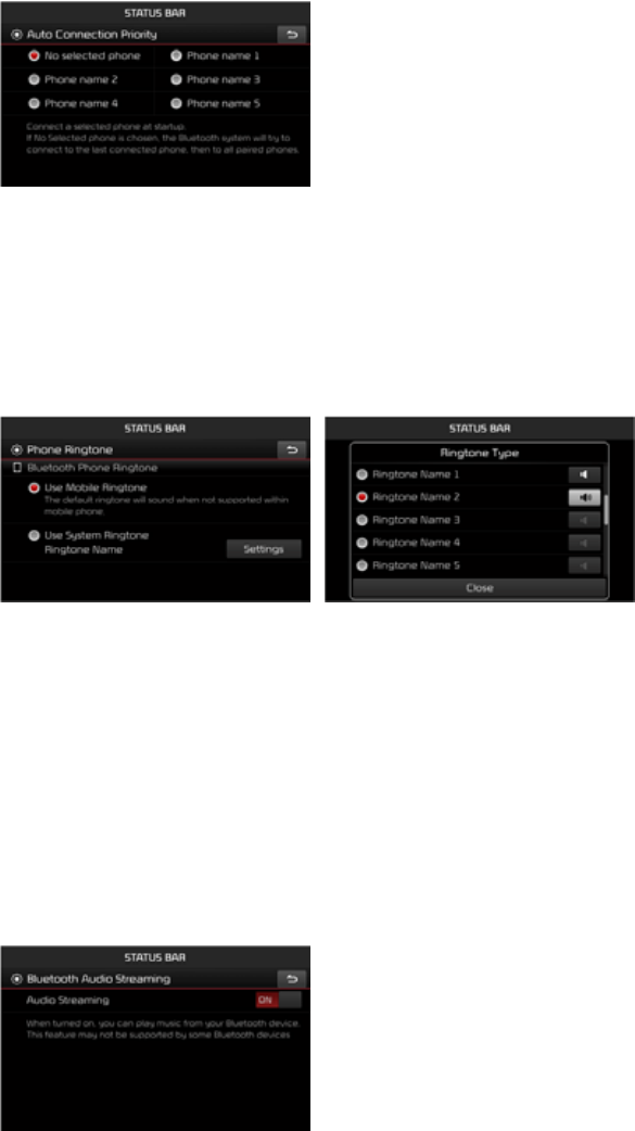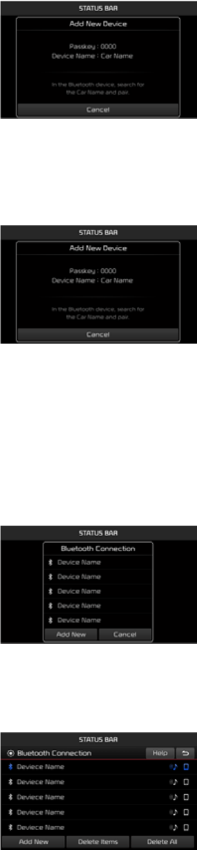 When ignition on, connect to the Bluetooth device automatically. If connection to the selected