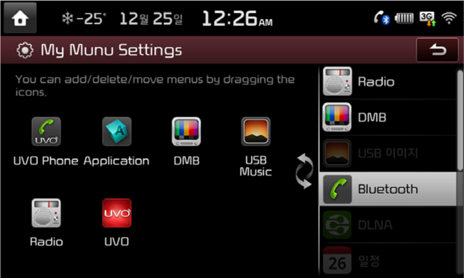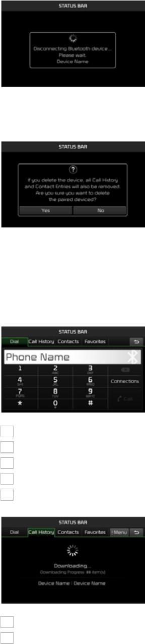▶ Select [PHONE] key in the Headunit Select [Phone] Select [Bluetooth Connection]