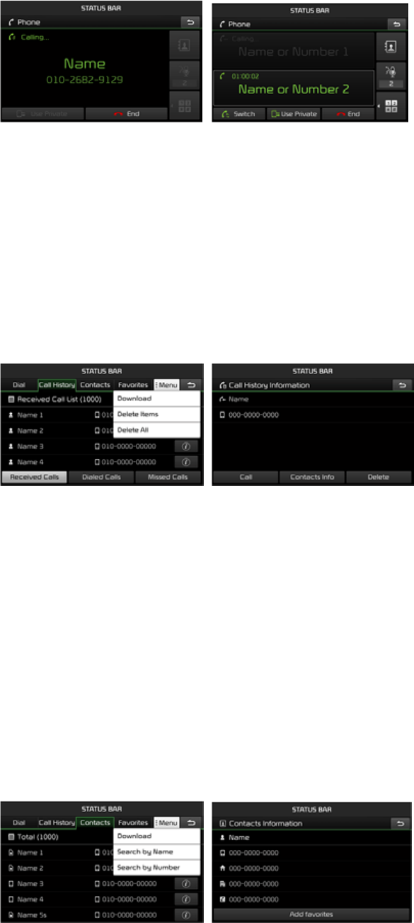 10. Contact Info: If the number saved in the system, moves to detail information.